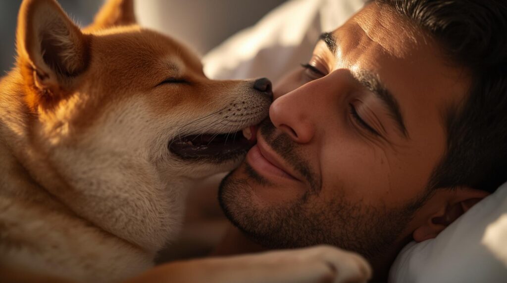 休日の朝。目覚まし時計よりも正確な「柴犬の鼻先タッチ」で目が覚める。