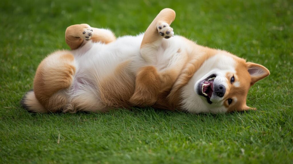 しかし次の瞬間、全速力で芝生にダイブ!背中じょりじょり。