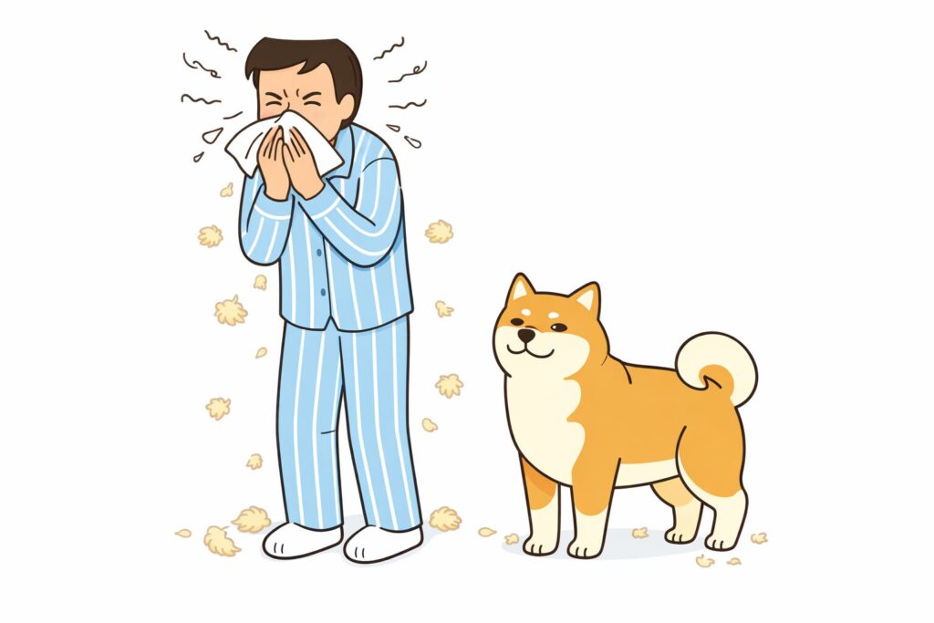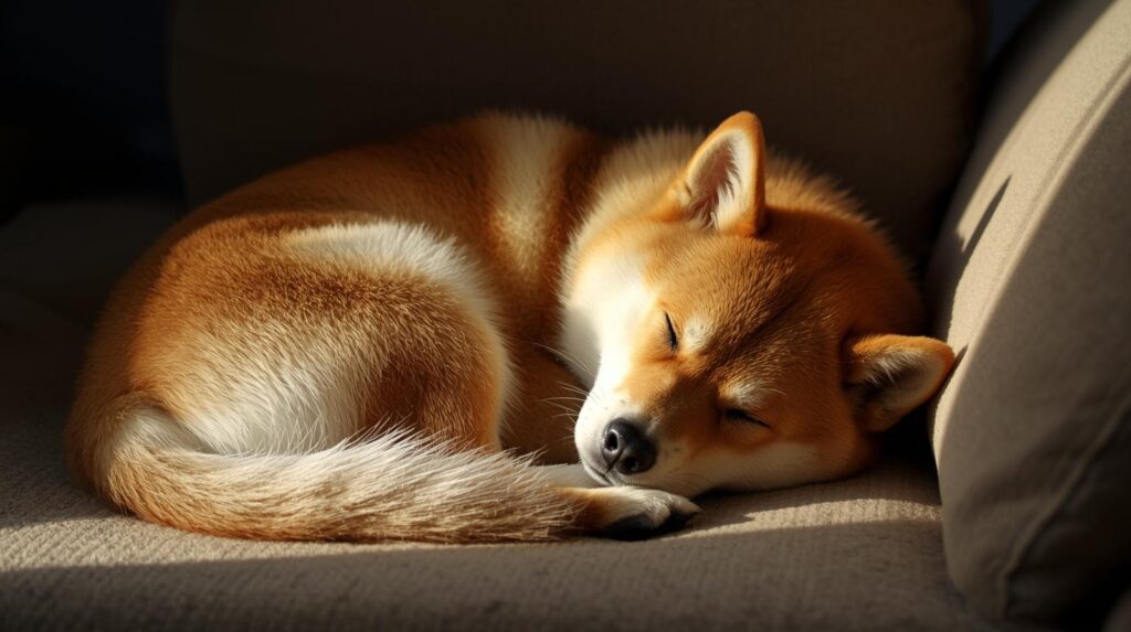 隣では、うちの柴犬が「何か?」という顔で丸くなり、尻尾だけを小さく振っている。