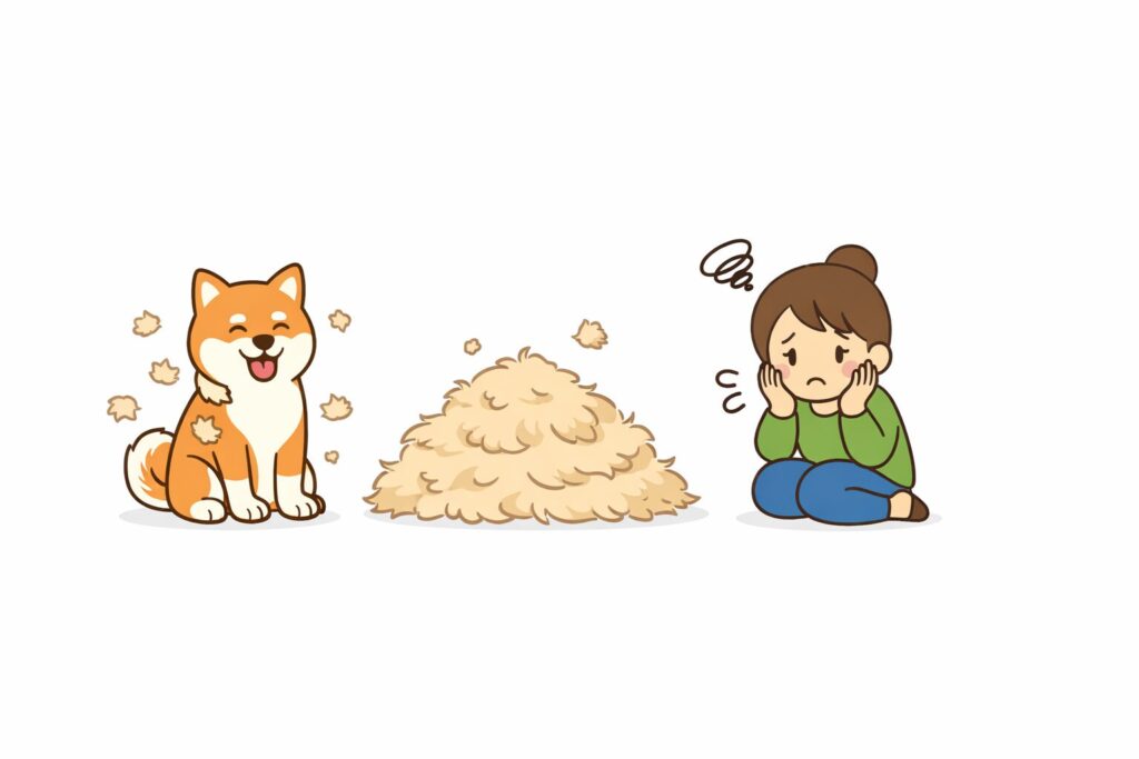 換毛期。年に二度やってくる、私とこの犬の静かな戦争だ。