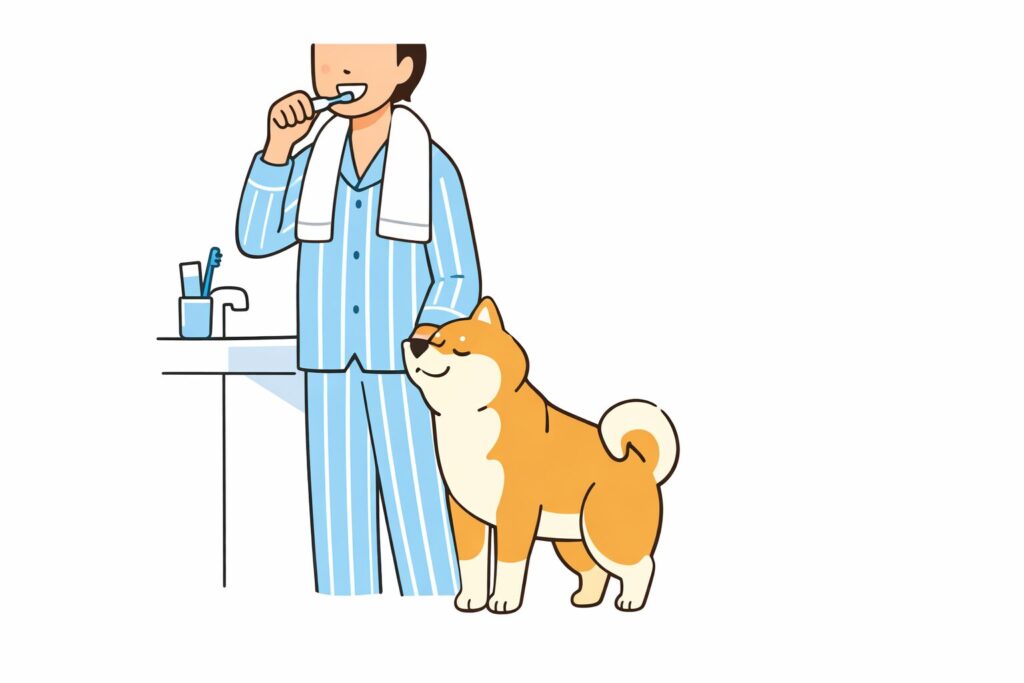 ブラッシングを終えると、柴犬は一瞬だけこちらを見て、小さく鼻を鳴らす。