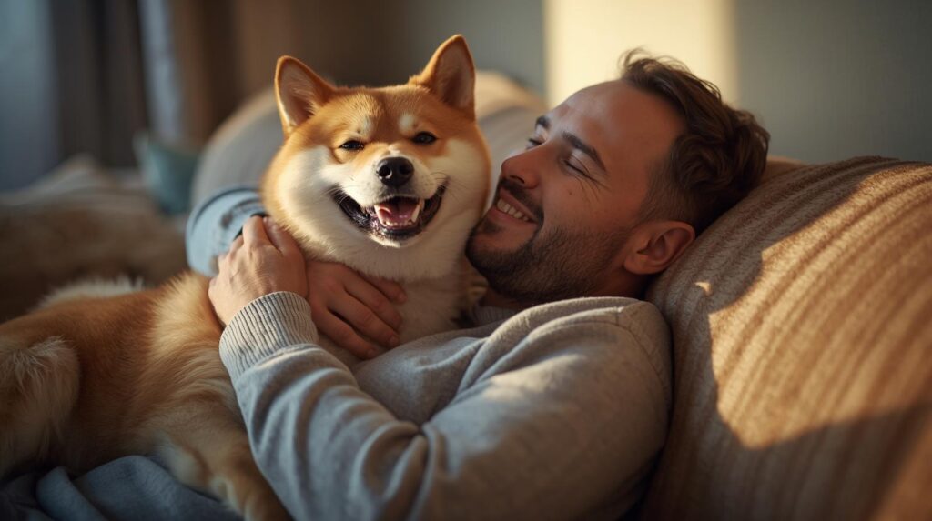 会社では、誰も私の疲れた背中を気に留めない。けれどこの犬だけは、私が座ると当然のように足元に来て、毛だらけの体を預けてくる。