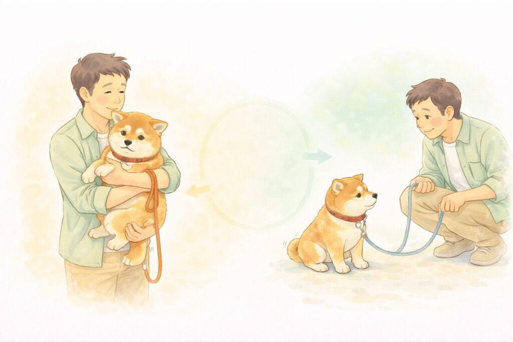 ただ、毎回“座る→抱っこ→帰れる”が続くと、犬によっては「座れば目的が叶う」と学習することも。