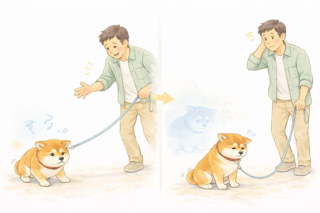 柴犬と暮らし始めたばかりだと、散歩中の“座り込み”は本当に困りますよね。