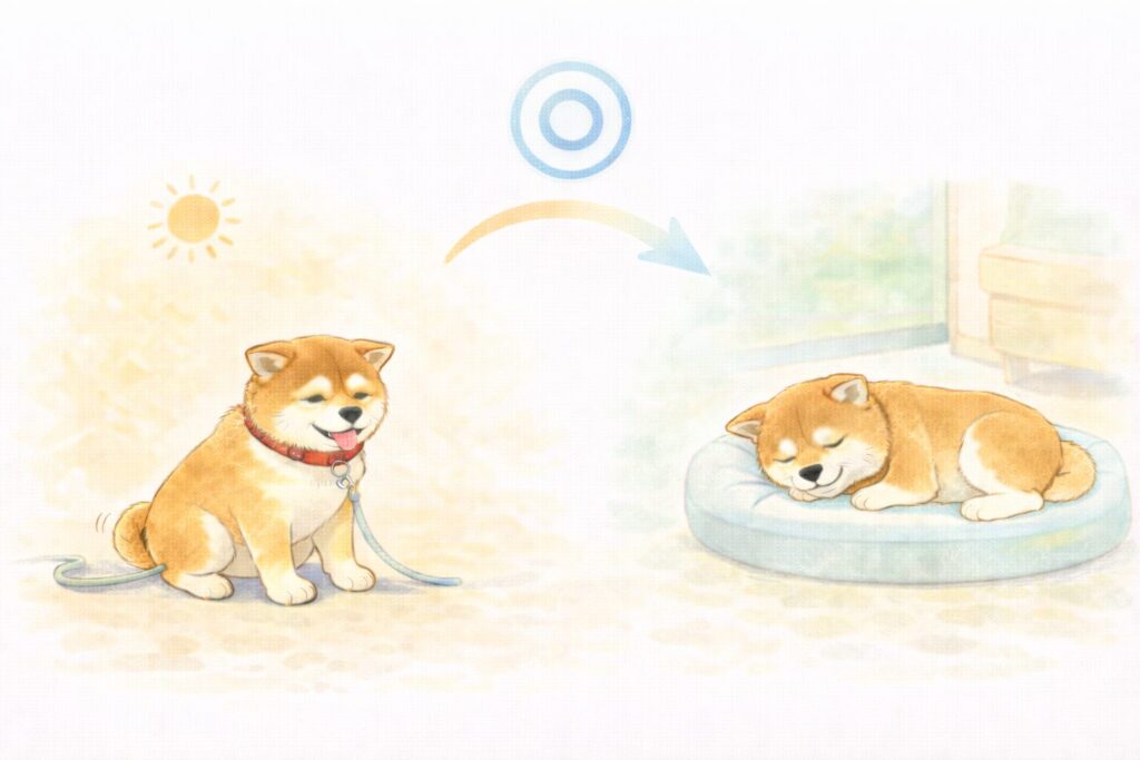 柴犬は元気そうに見えても、子犬・シニア・運動不足の子は体力が足りず、途中で「もう無理…」となることがあります。