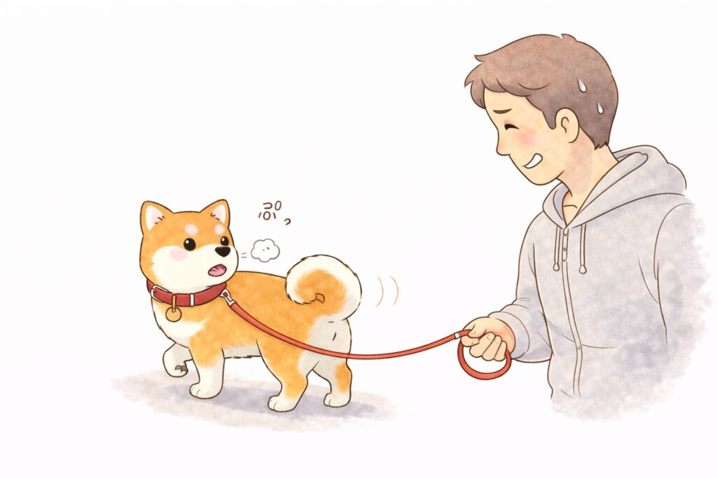 尻尾はゆるやかに振られ、「どうするの?」と言わんばかりの顔だ。