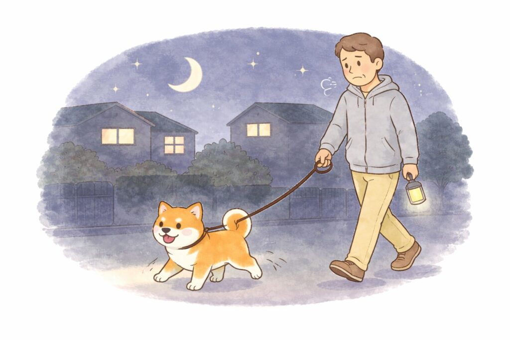 鼻をくんくんと鳴らしながら、街灯の下で影を追いかけたり、風の匂いを確かめたりしている。