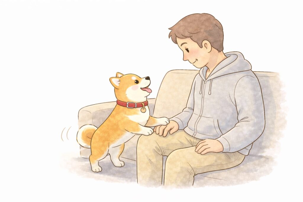 銀太は一歩、二歩と近づき、私の膝に前足をちょこんと乗せた。