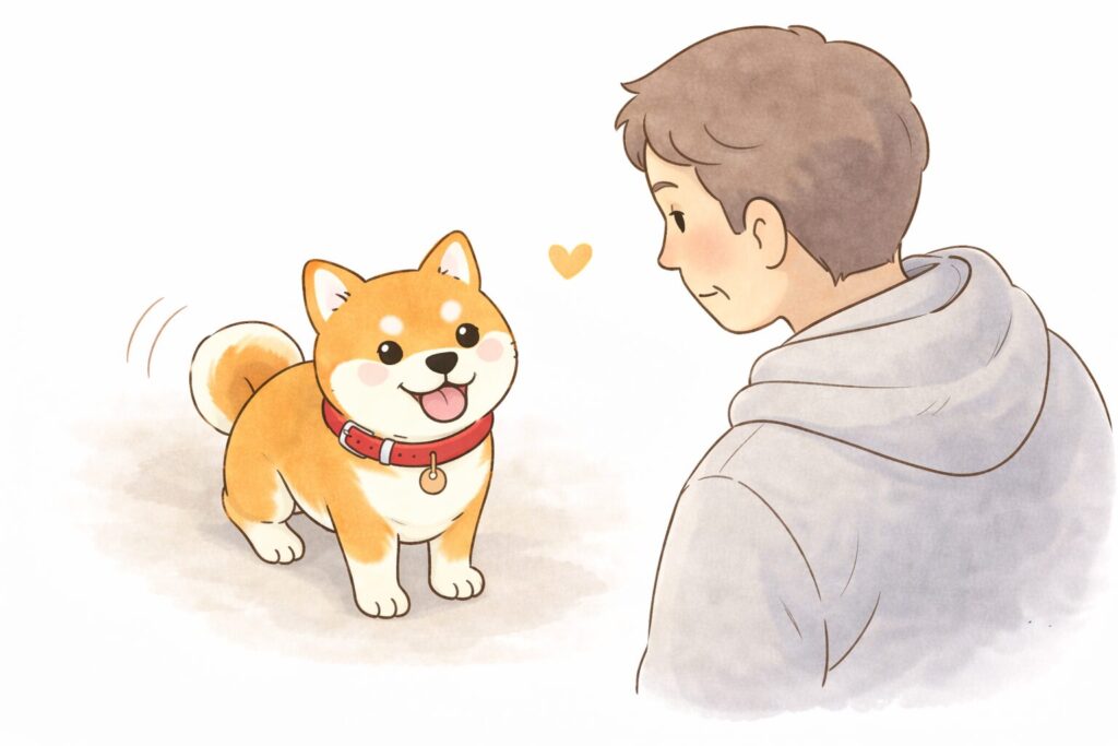見ると、うちの柴犬”銀太”が、まっすぐこちらを見ていた。