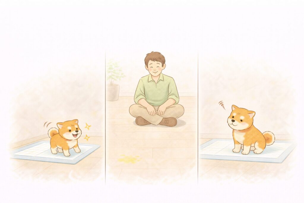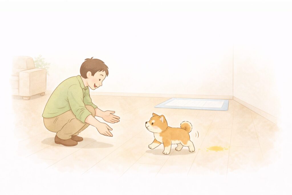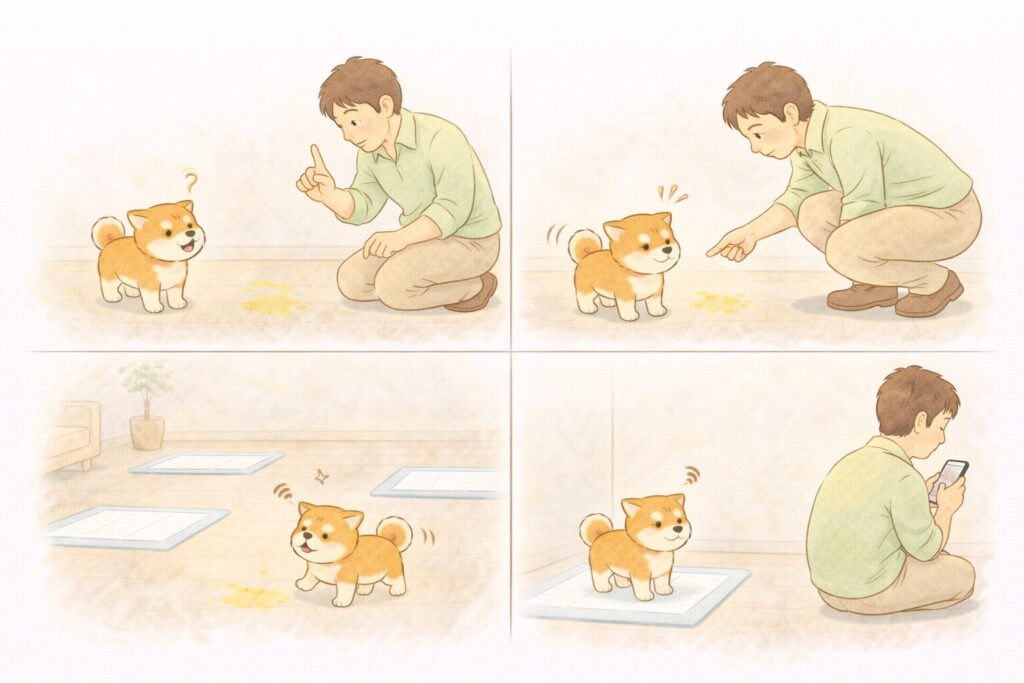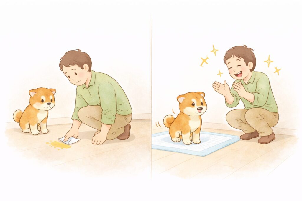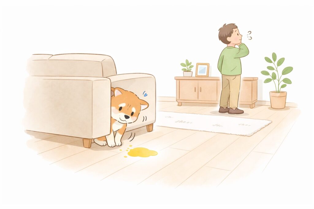 柴犬 がトイレの 失敗のあとに強く叱ると、「排泄=怒られる」と学習してしまいます。