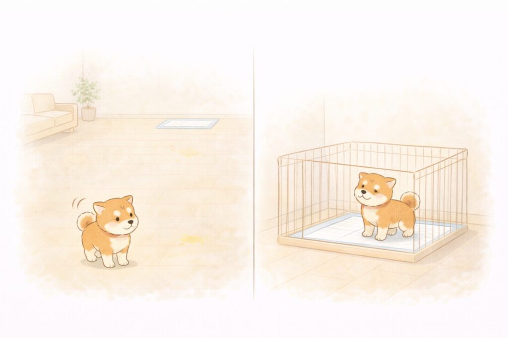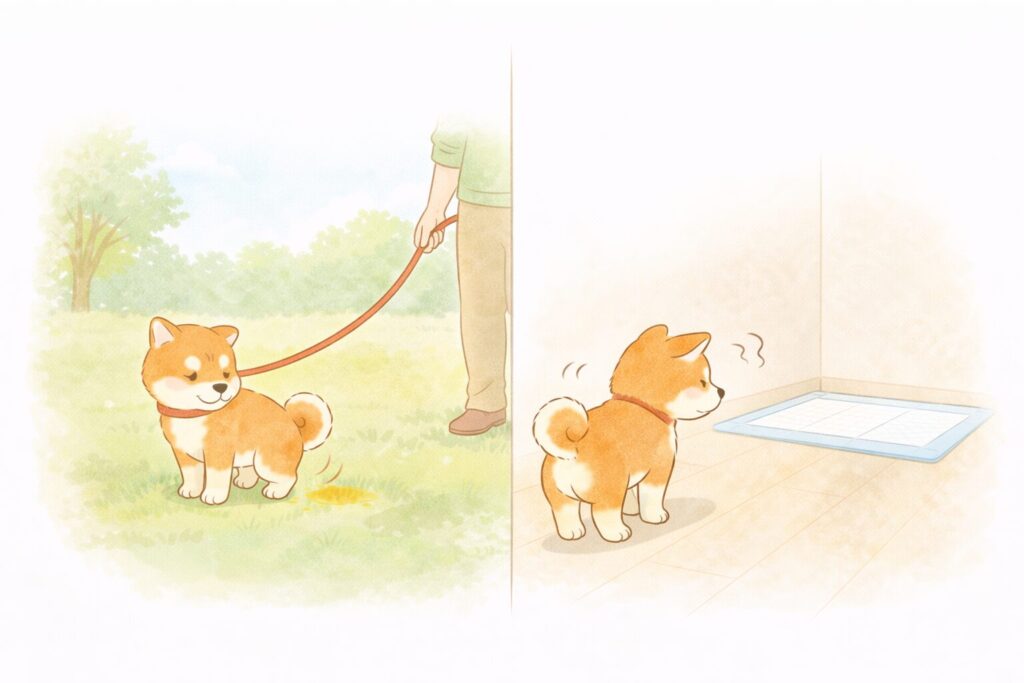 よくある間違いは、子犬期に外だけでさせること。