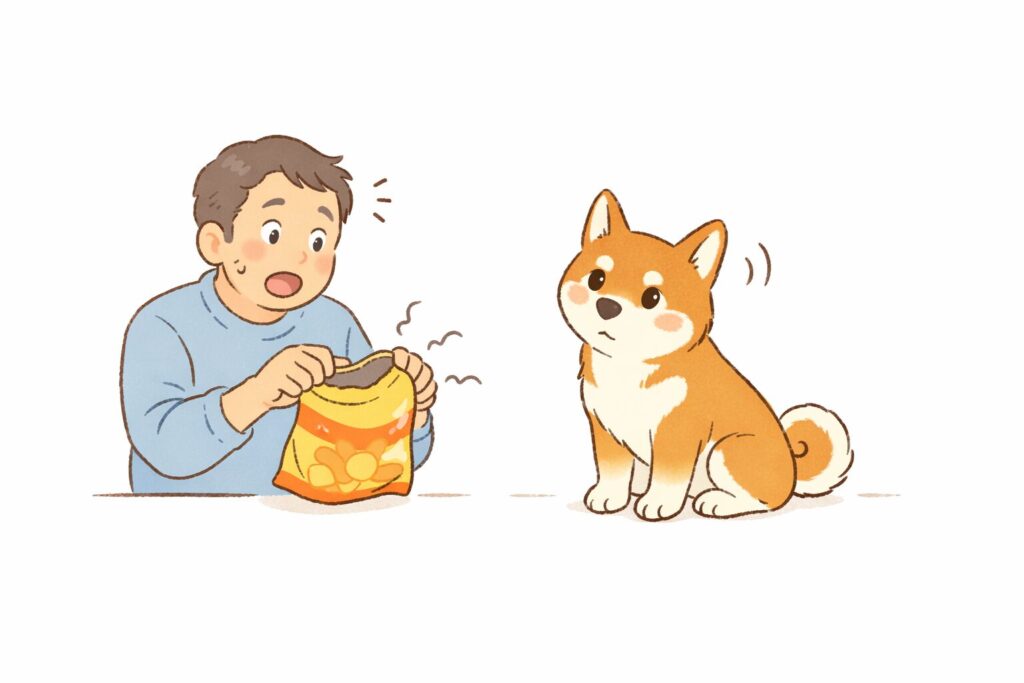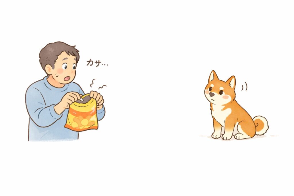 飼い主の声は聞こえないのに、袋の音だけは絶対に聞き逃さない。