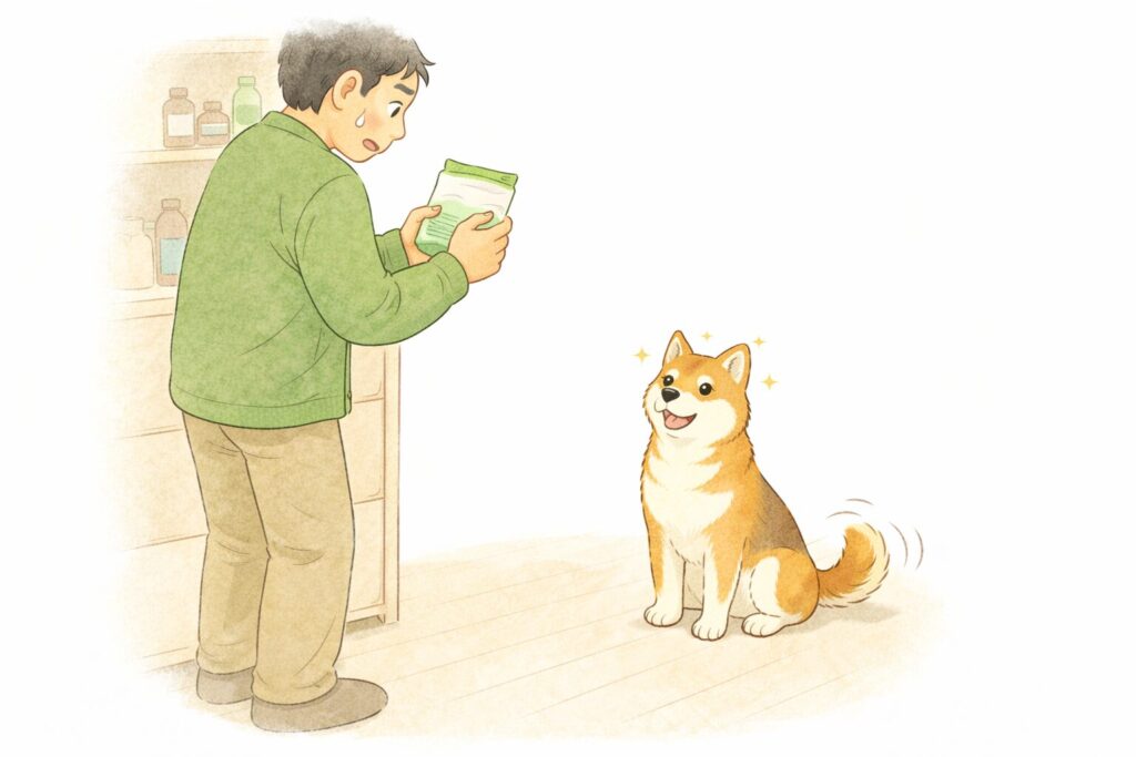 おやつの棚の前で、うちの柴犬”銀太”(以下、銀太)が前足で静かに主張しているのだ。