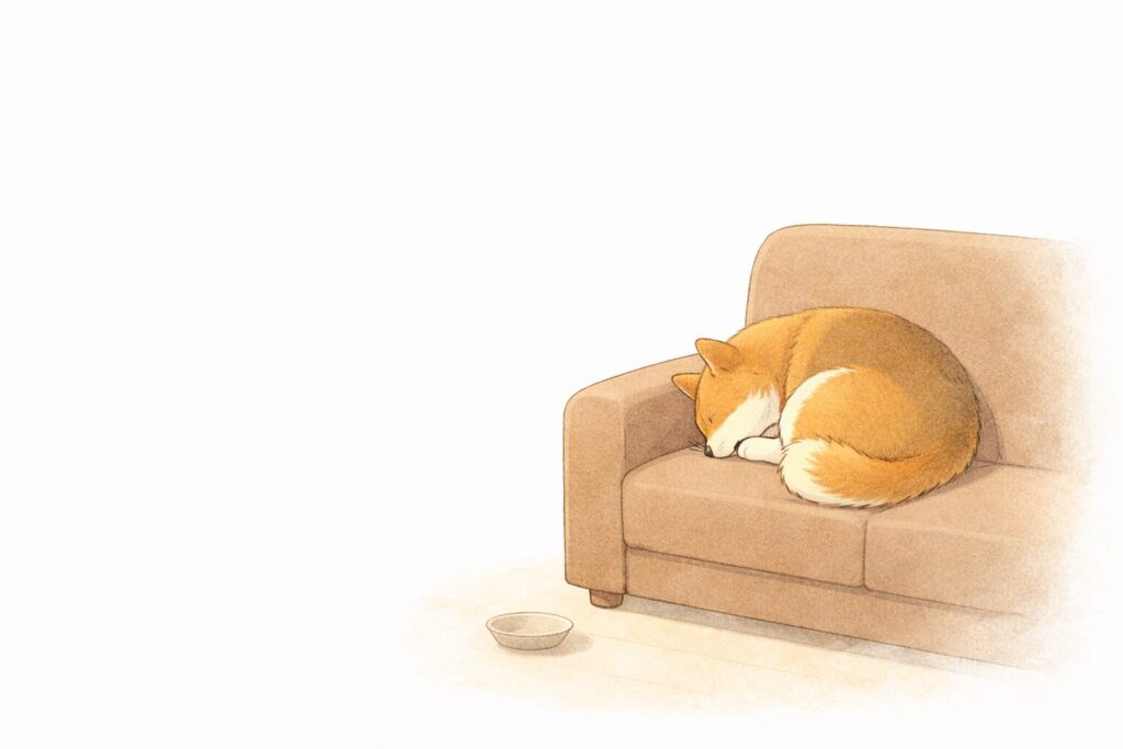 おやつを食べ終えると、満足げに鼻を鳴らし、くるりと向きを変えてソファに飛び乗る。